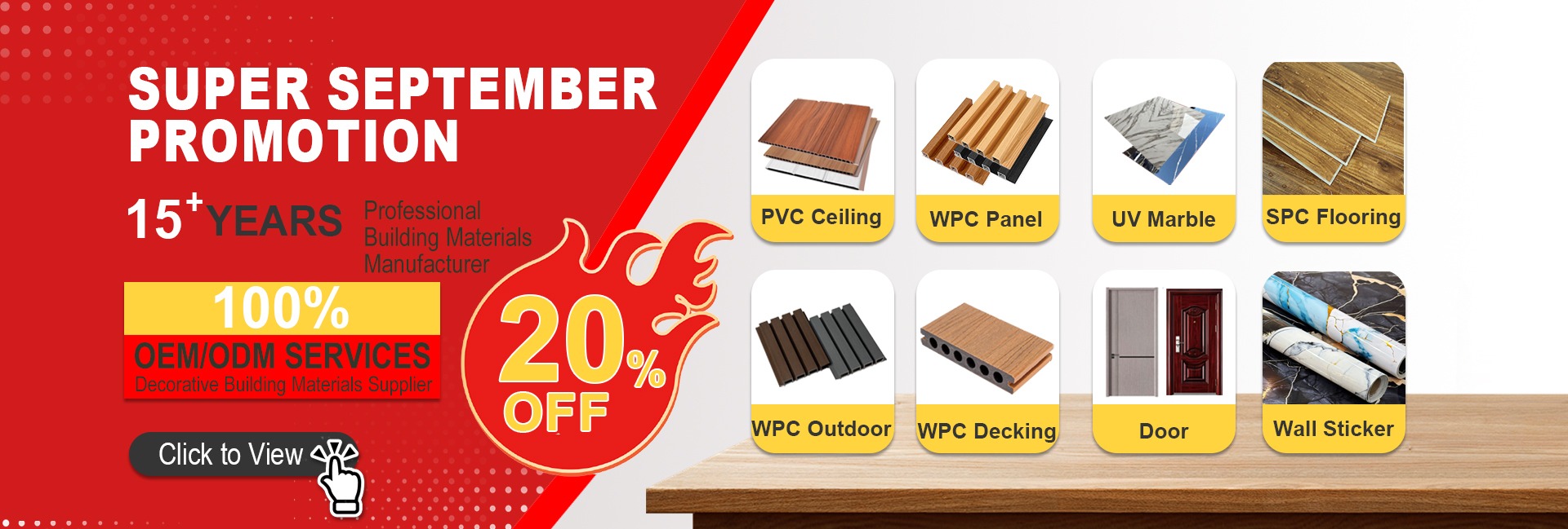 Productos principales:Panel de techo de PVC, panel de pared de PVC, paneles estriados de WPC, suelo SPC, lámina de mármol UV